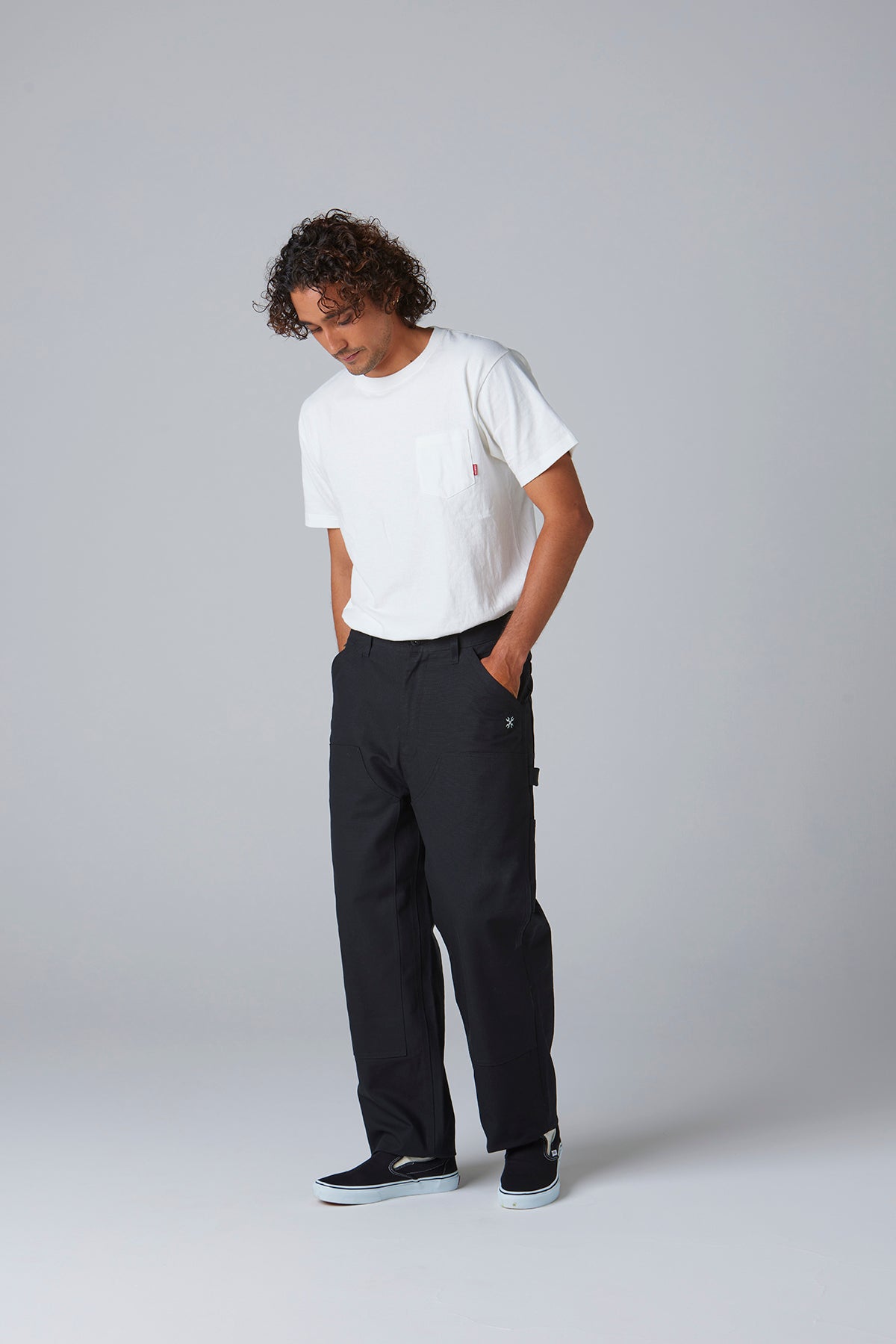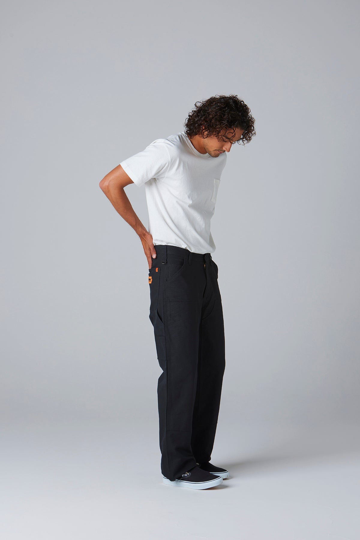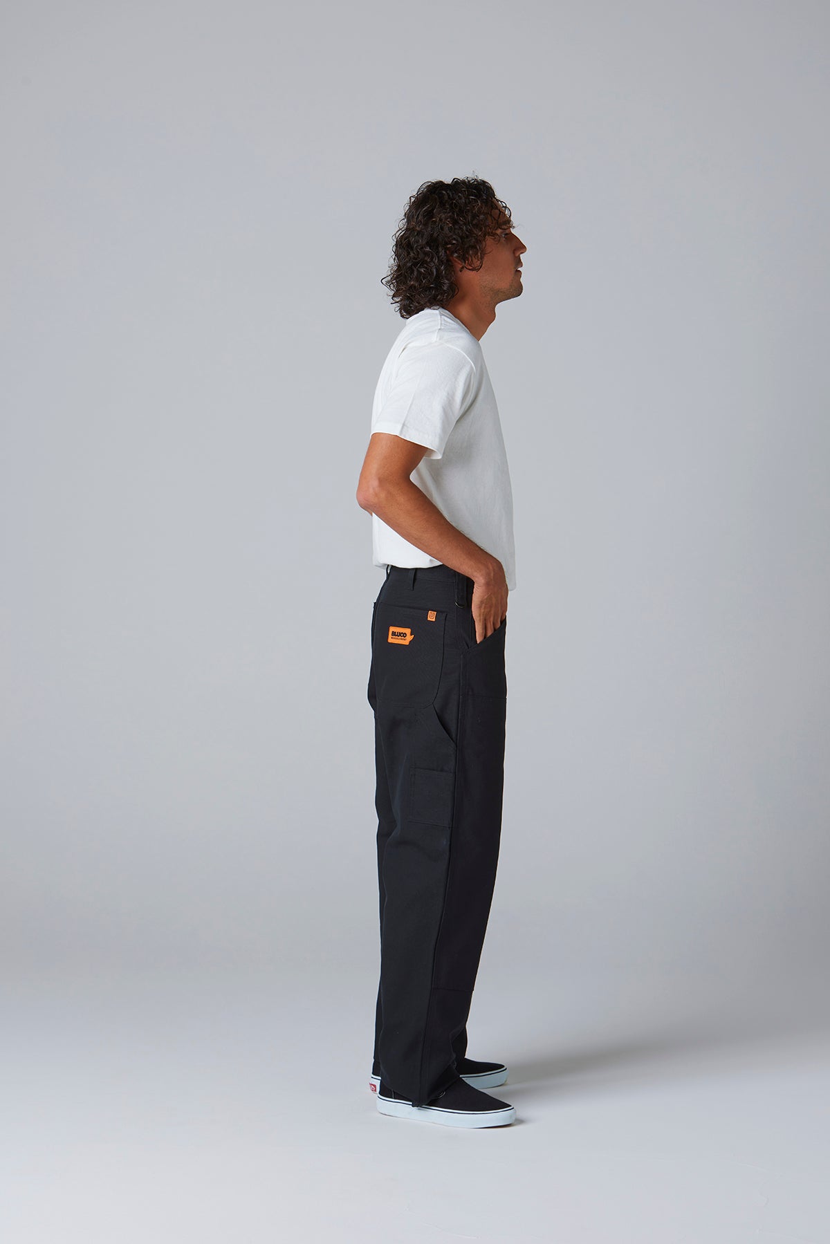 ベースにはUO社定番のペインターパンツを採用し、BLUCO流のパターン修正を加えることで、昔ながらの無骨なシルエットに、現代的な履き心地を融合させました。どこか懐かしく、それでいて今っぽい、雰囲気のある一本に仕上がっています。素材には定評のあるヘビーキャンバスを使用。タフな生地感でガシガシ穿ける上、長く穿き込むほどに味が出る経年変化も楽しめます。