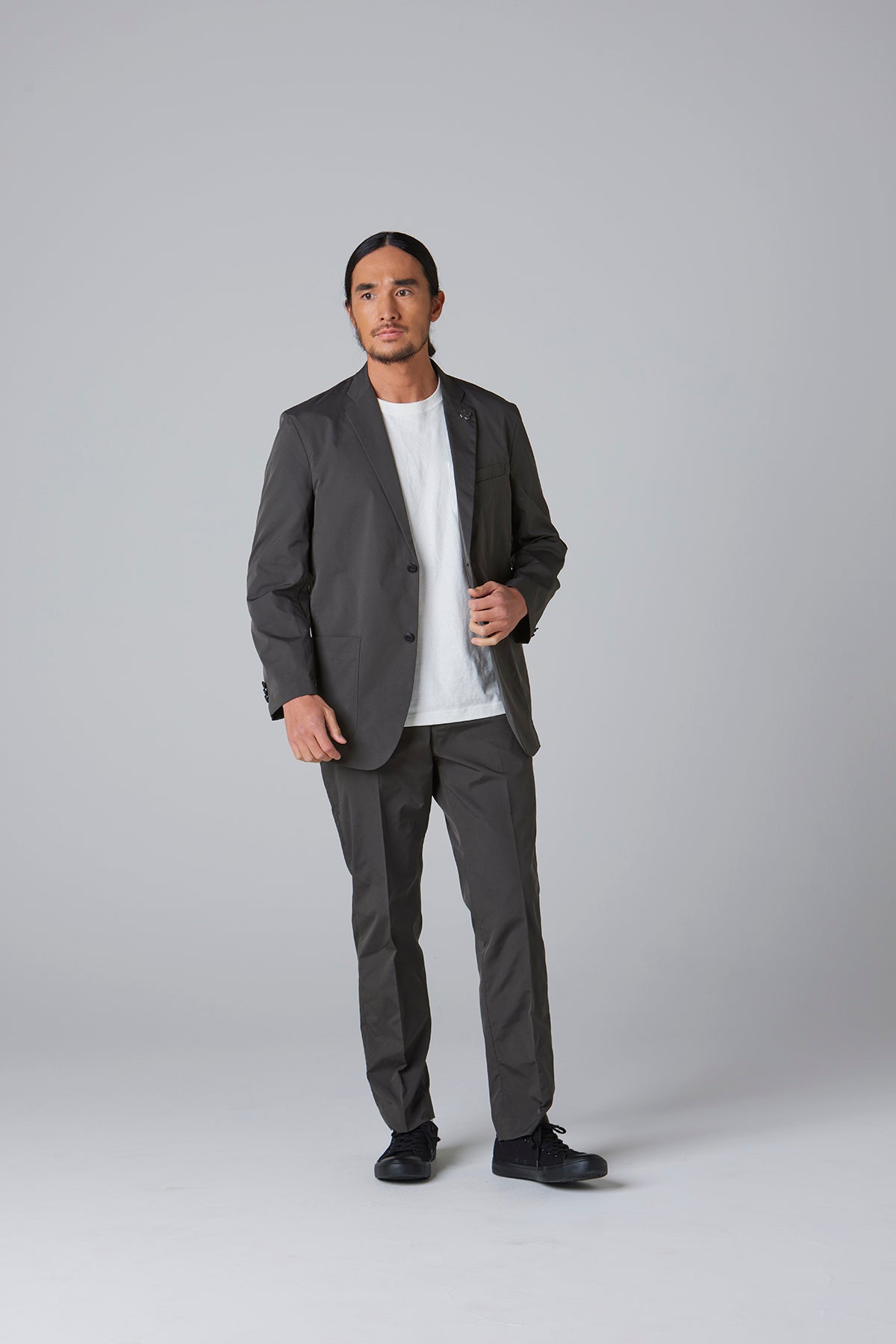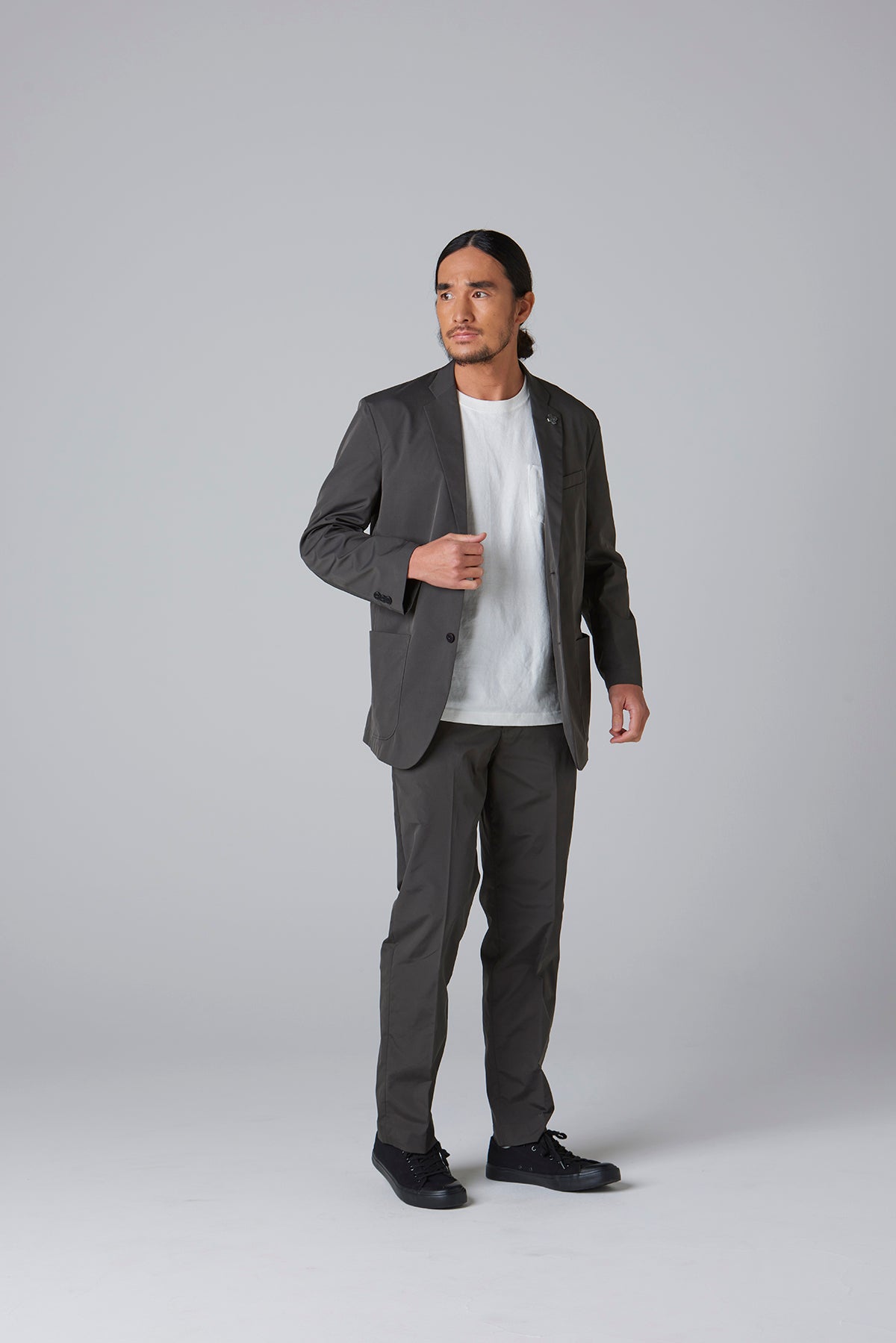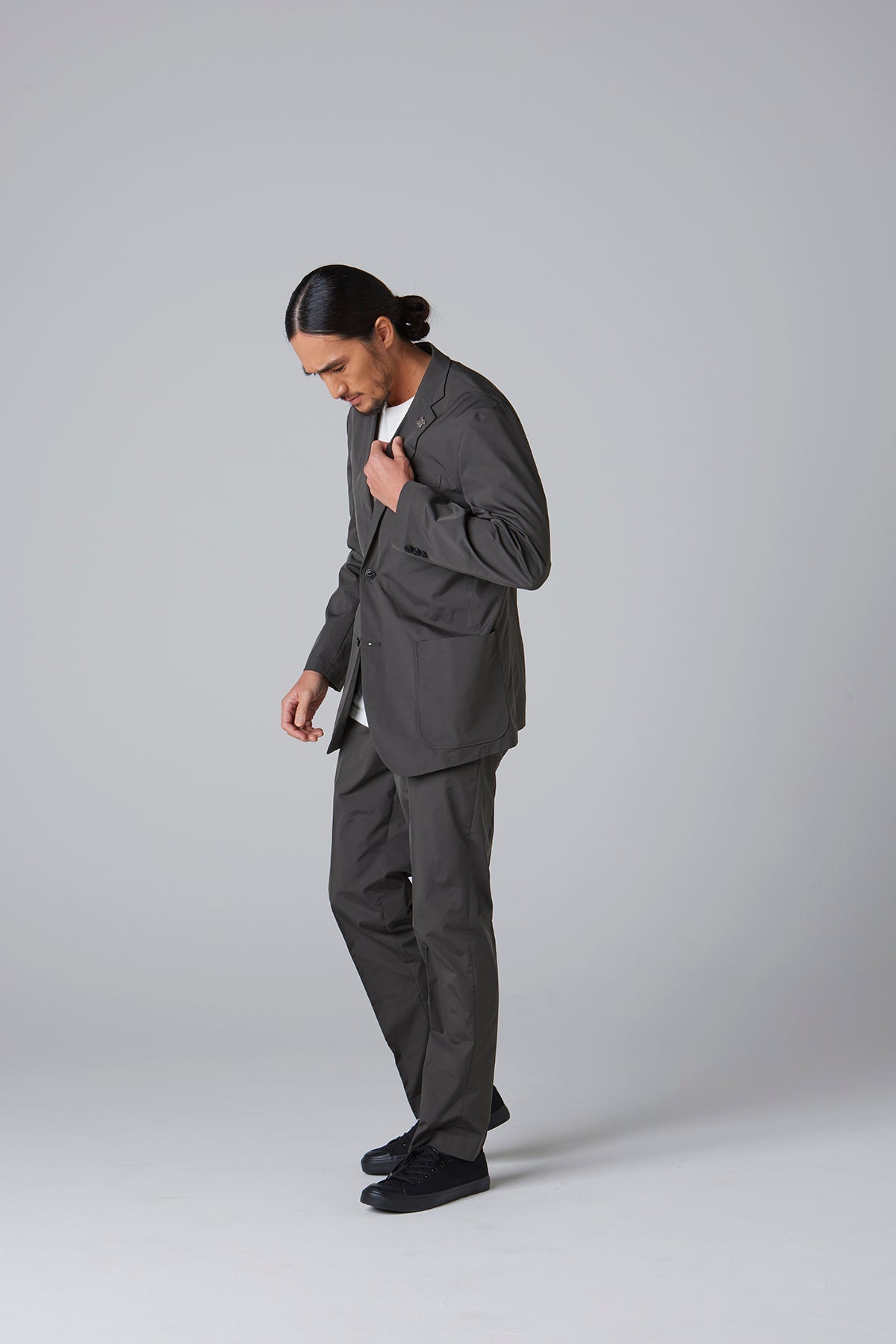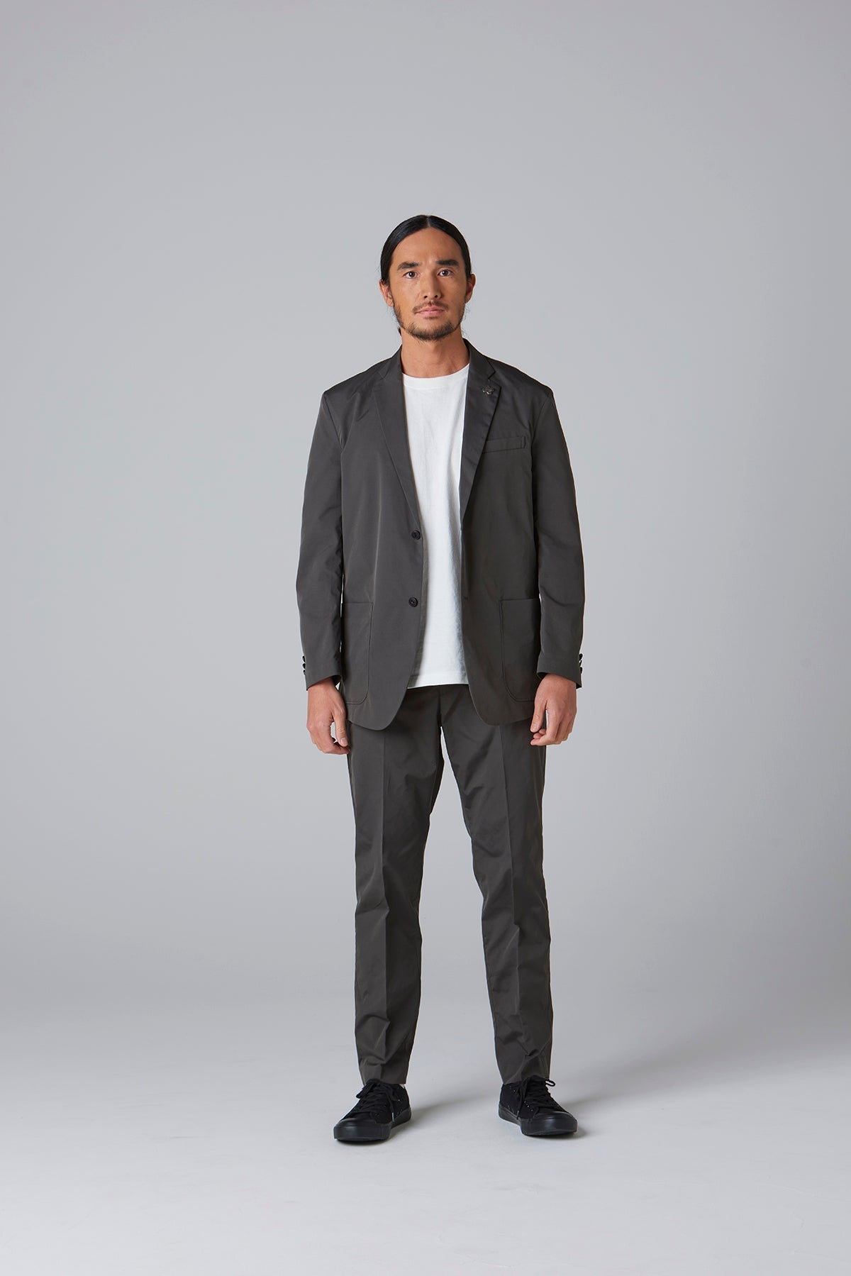 高密度のストレッチポリエステルを使用したテーラードジャケット。軽量でありながら引き裂きに強く、快適な着心地を実現したこの素材は、日常のビジネスシーンやカジュアルな会食はもちろん、スマートな装いが求められる場でも活躍する万能な一着です。動きやすさを損なわないストレッチ性で、長時間の着用でもストレスを感じさせません。シルエットは、流行に左右されないタイトですっきりとしたラインで、幅広いスタイルに対応します。