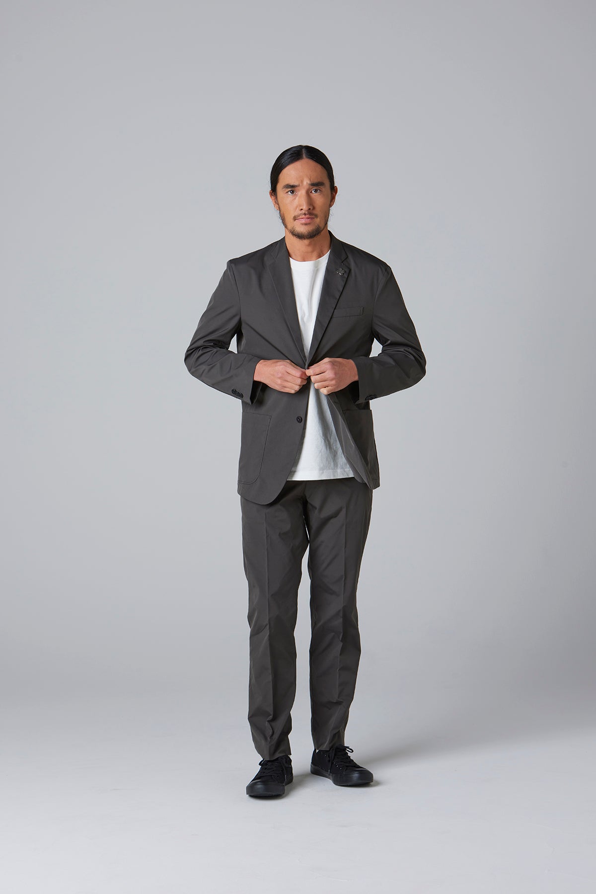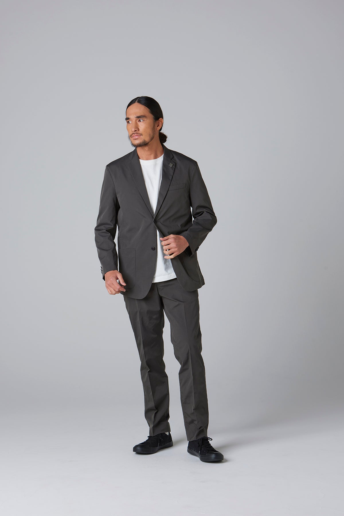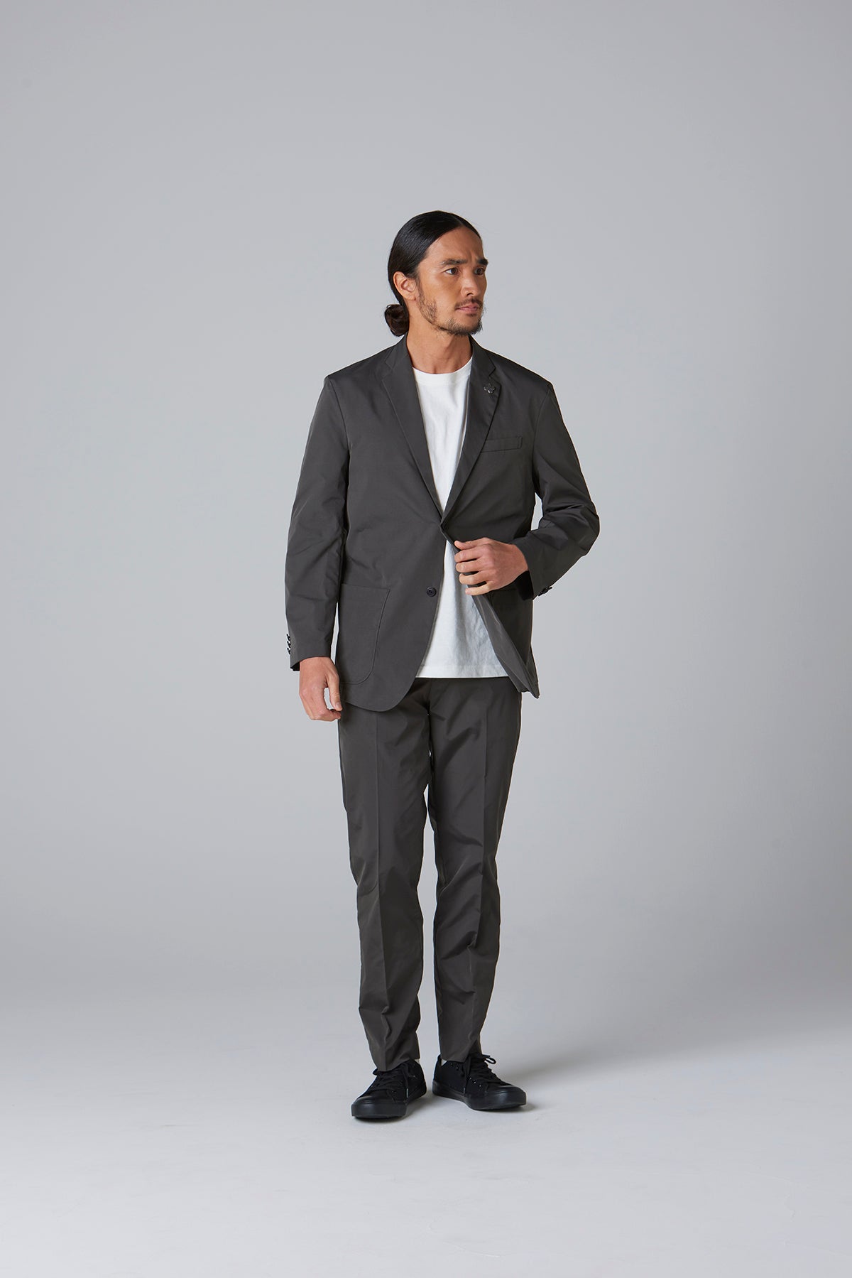 高密度のストレッチポリエステルを使用したテーラードジャケット。軽量でありながら引き裂きに強く、快適な着心地を実現したこの素材は、日常のビジネスシーンやカジュアルな会食はもちろん、スマートな装いが求められる場でも活躍する万能な一着です。動きやすさを損なわないストレッチ性で、長時間の着用でもストレスを感じさせません。シルエットは、流行に左右されないタイトですっきりとしたラインで、幅広いスタイルに対応します。