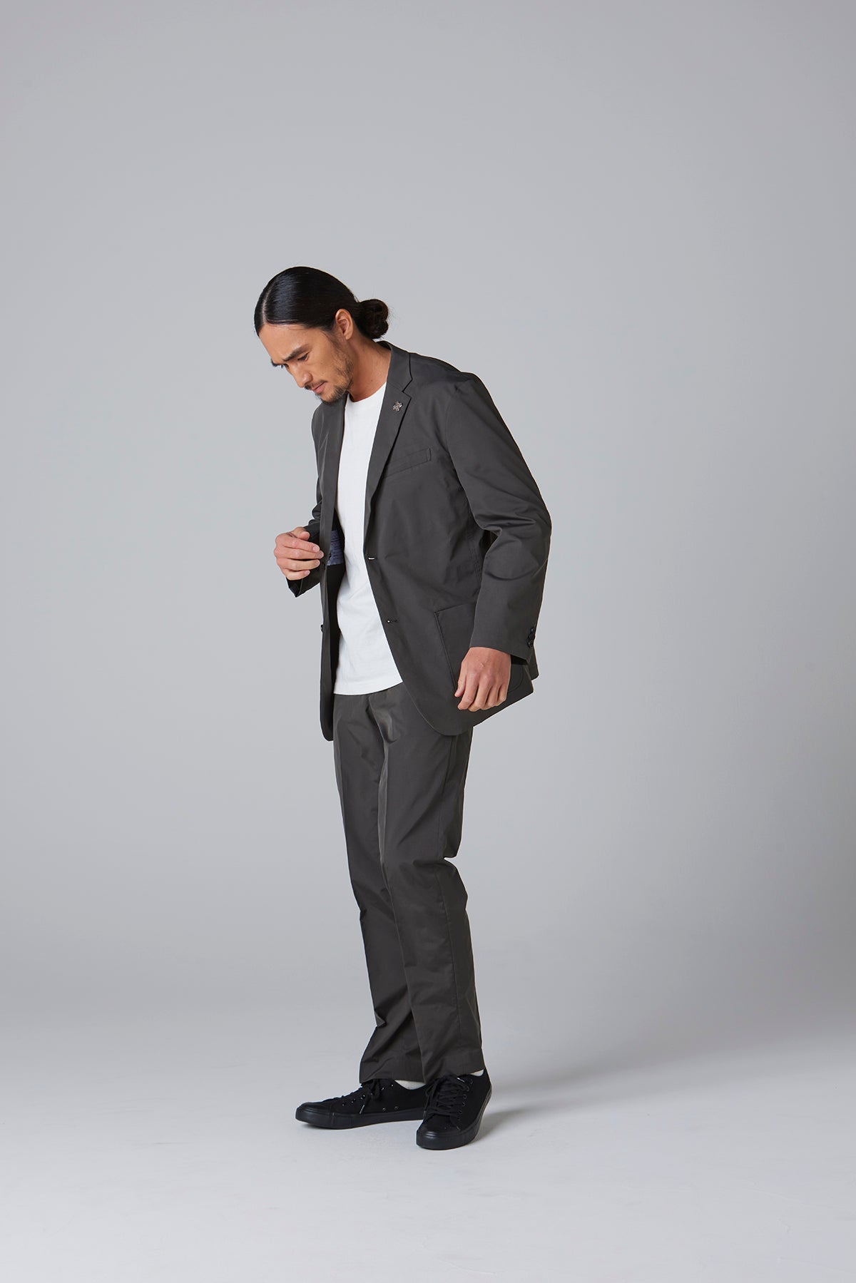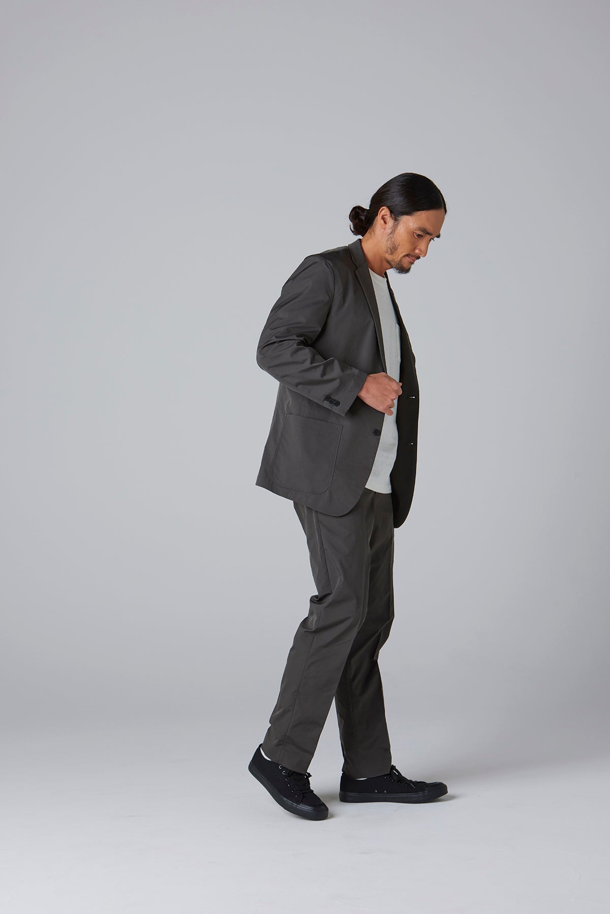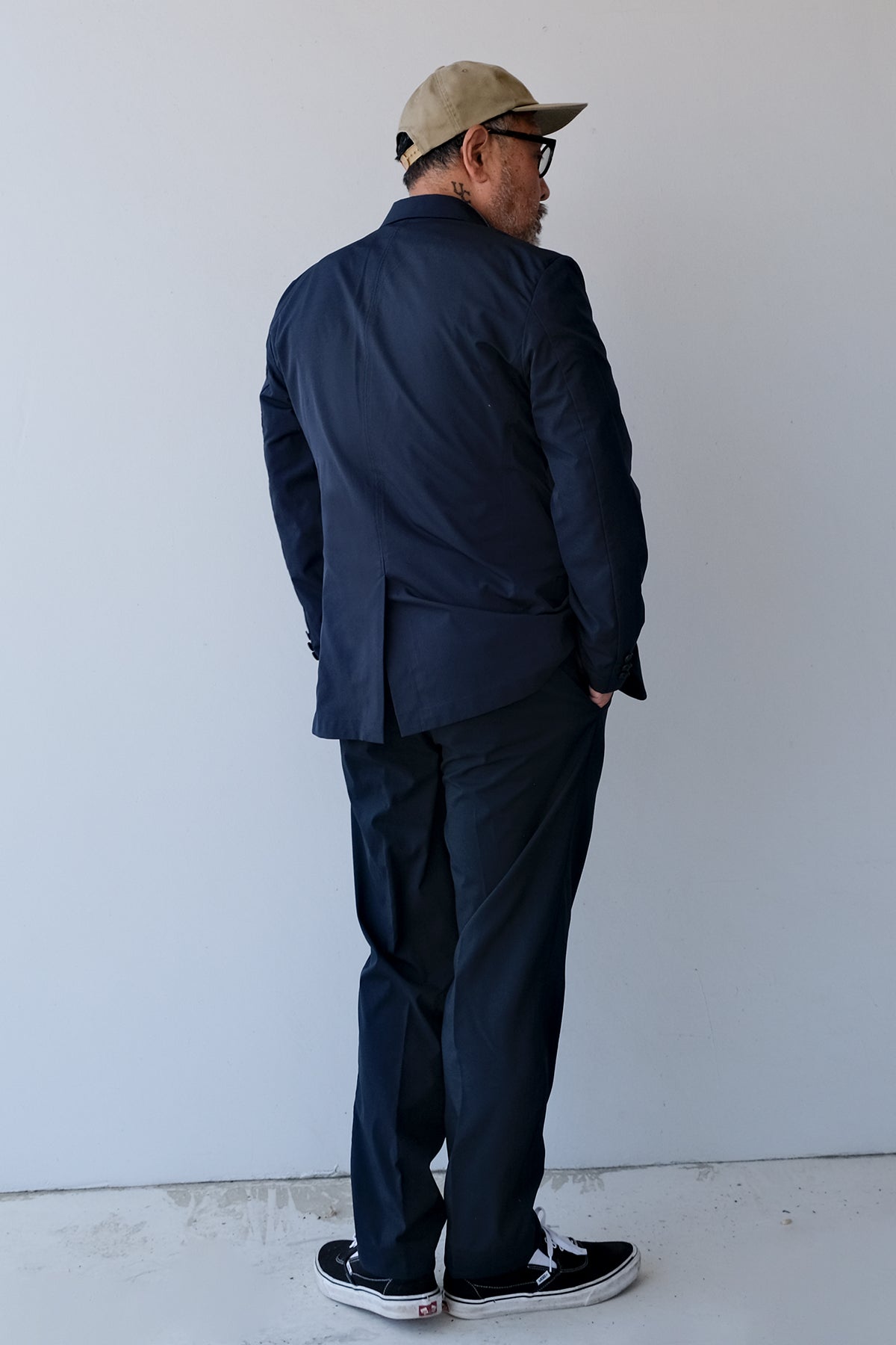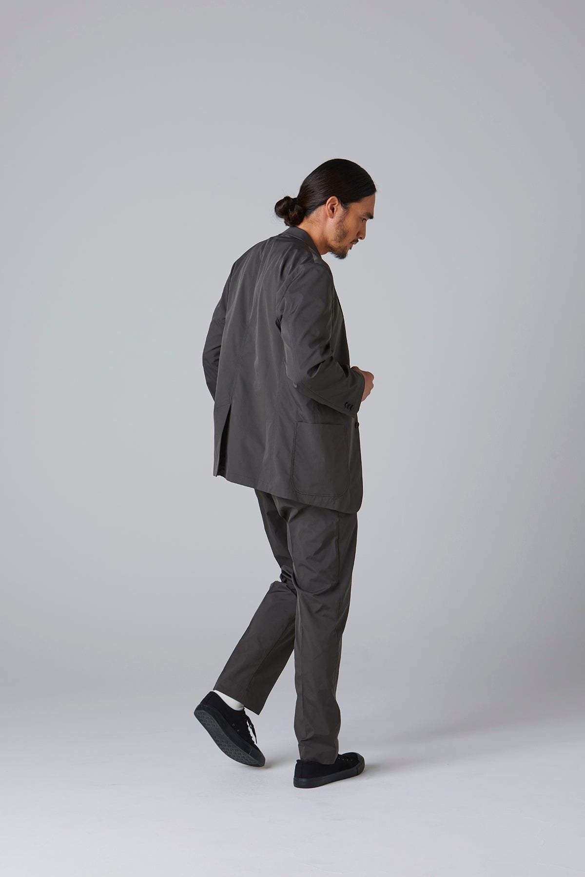 高密度のストレッチポリエステルを使用したテーラードジャケット。軽量でありながら引き裂きに強く、快適な着心地を実現したこの素材は、日常のビジネスシーンやカジュアルな会食はもちろん、スマートな装いが求められる場でも活躍する万能な一着です。動きやすさを損なわないストレッチ性で、長時間の着用でもストレスを感じさせません。シルエットは、流行に左右されないタイトですっきりとしたラインで、幅広いスタイルに対応します。